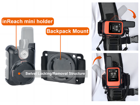 - Safety snap swivel - The garmin inReach mini 2 backpack mount and holder can be locked or removed by rotating at an angle, allowing you to easily stow and access it. Not afraid it will be lost. somewhere.
